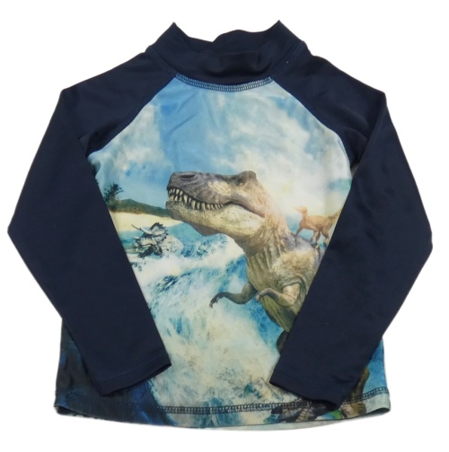Tmavo-světlemodré UV triko s dinosaurem