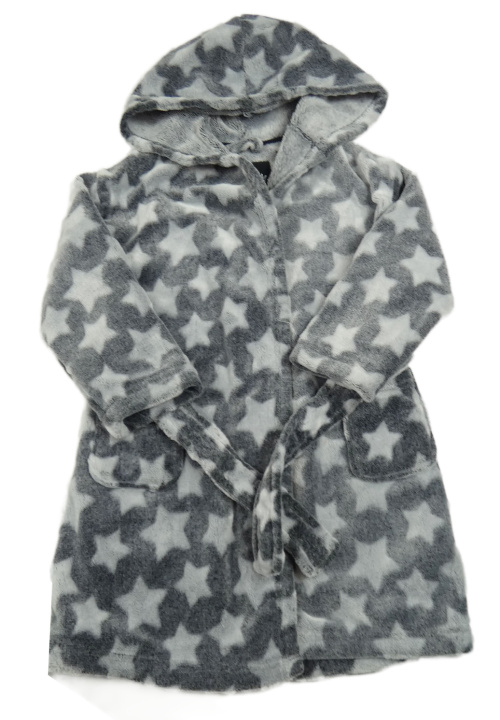 Tmavošedý chlupatý župan s hvězdami a kapucí F&F