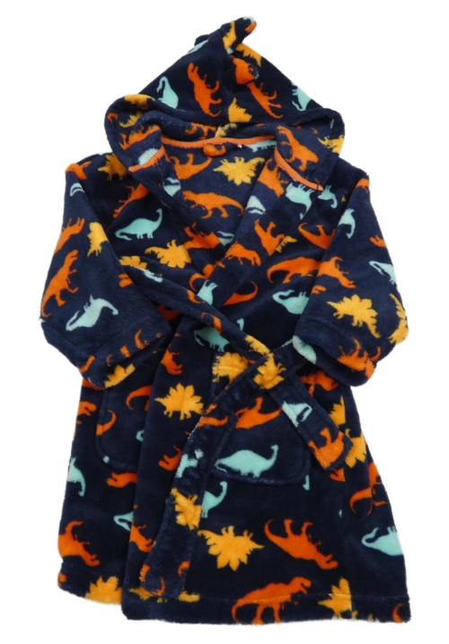 Tmavomodro-barevný chlupatý župan s dinosaury a kapucí V by Very
