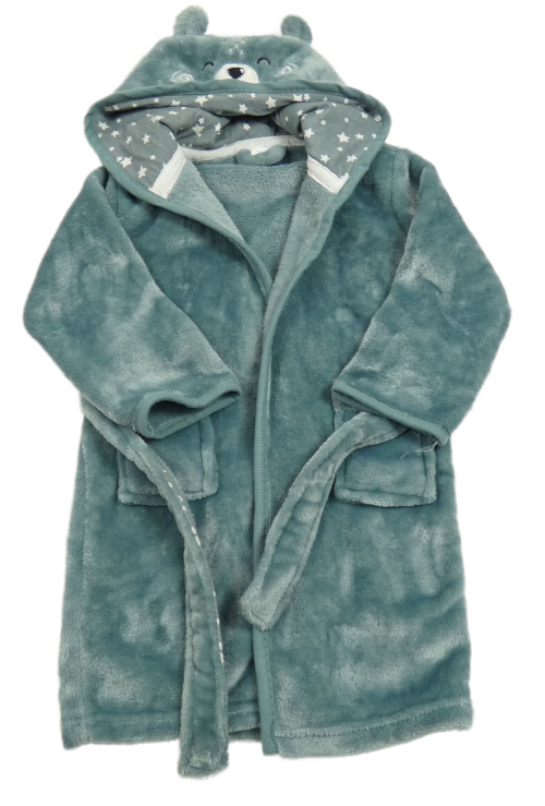 Zelenošedý chlupatý župan s medvídkem a kapucí Topolino