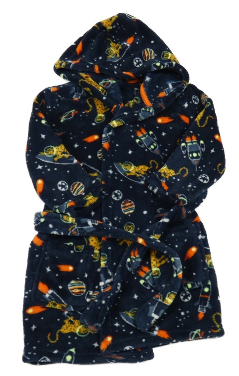 Tmavomodrý plyšový župan s vesmírem a kapucí HEMA