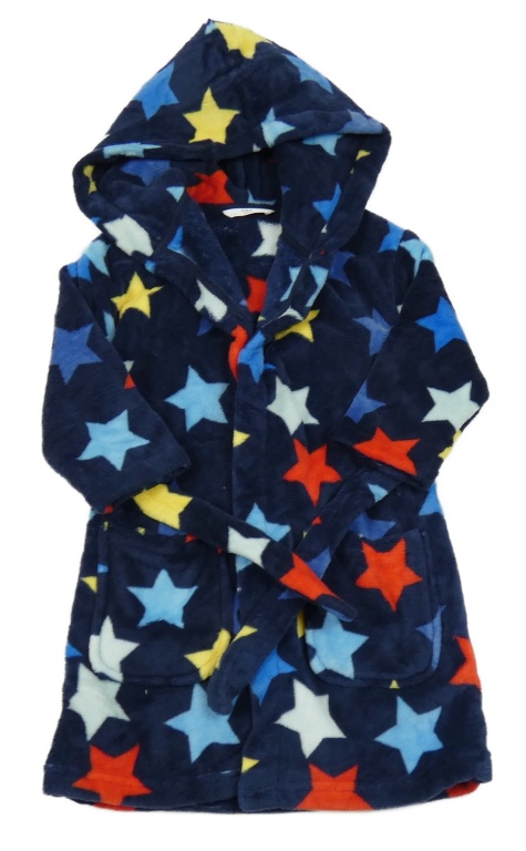 Tmavomodro-barevný plyšový župan s hvězdami a kapucí M&S