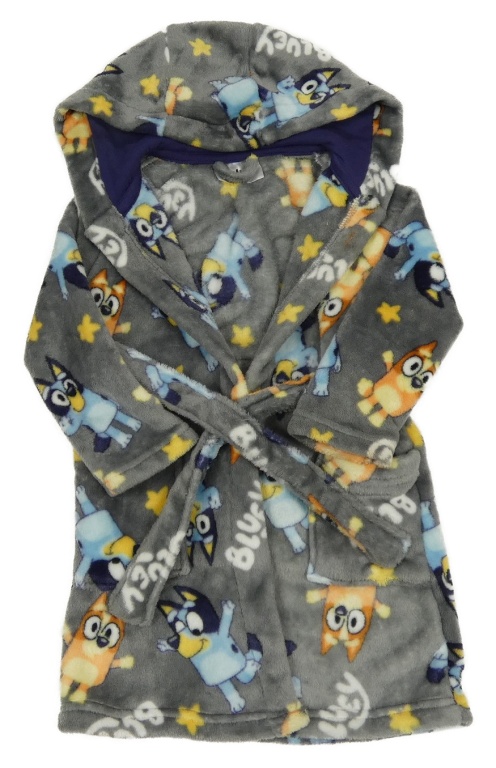 Šedý chlupatý župan s Bluey a kapucí Tu