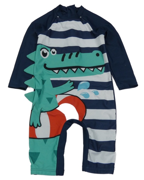 Tmavomodro-bílý pruhovaný UV overal s krokodýlkem Matalan