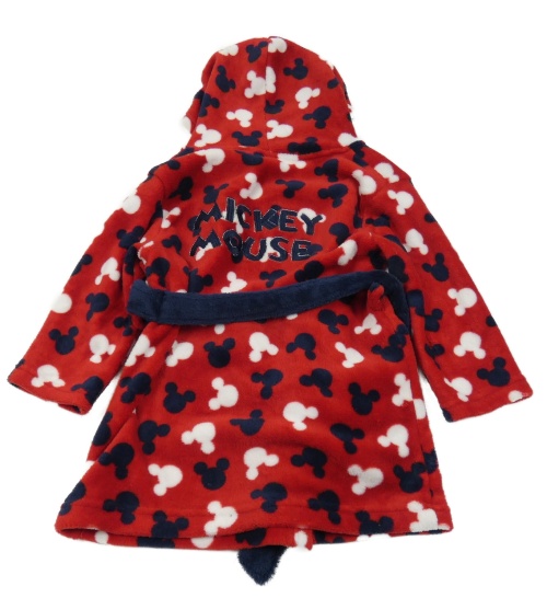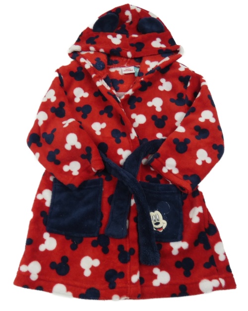 Červený chlupatý župan s Mickeym a kapucí Disney