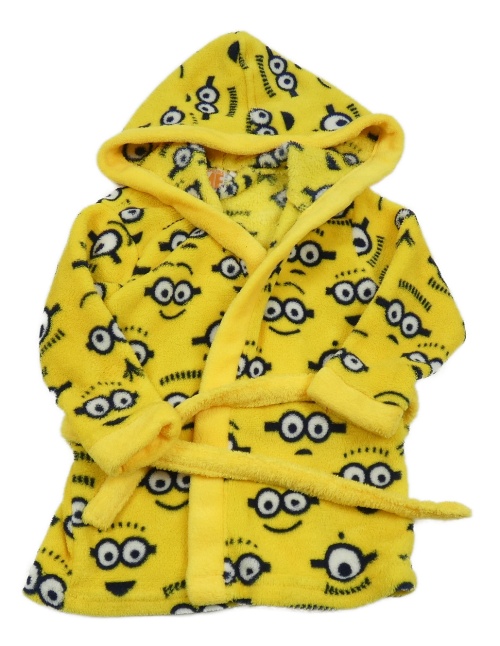 Žlutý plyšový župan s mimoni a kapucí