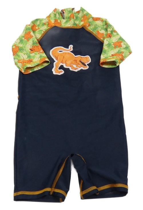 Tmavomodro-zeleno-žlutý UV overal s dinosaury a listy Kuniboo
