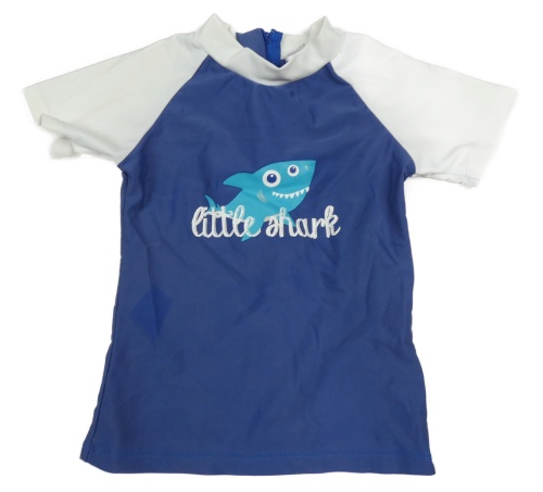 Tmavomodro-bílé UV tričko se žralokem