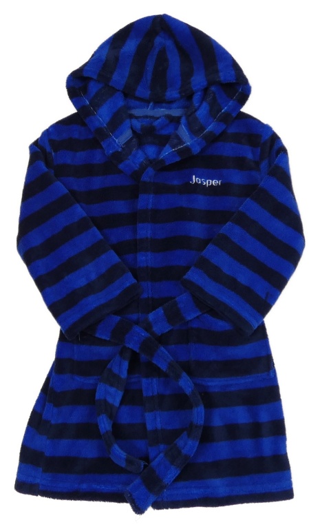 Tmavomodro-safírový pruhovaný plyšový župan s kapucí