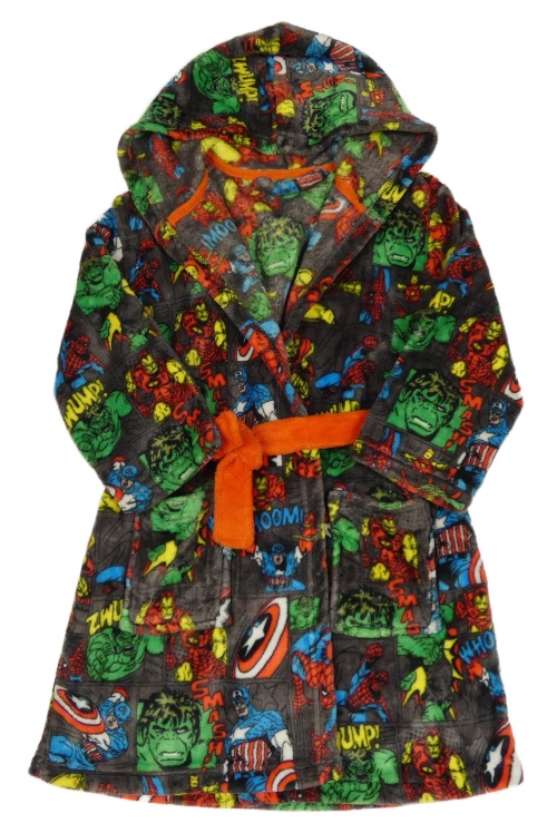 Tmavošedo-barevný plyšový župan se superhrdiny a kapucí George