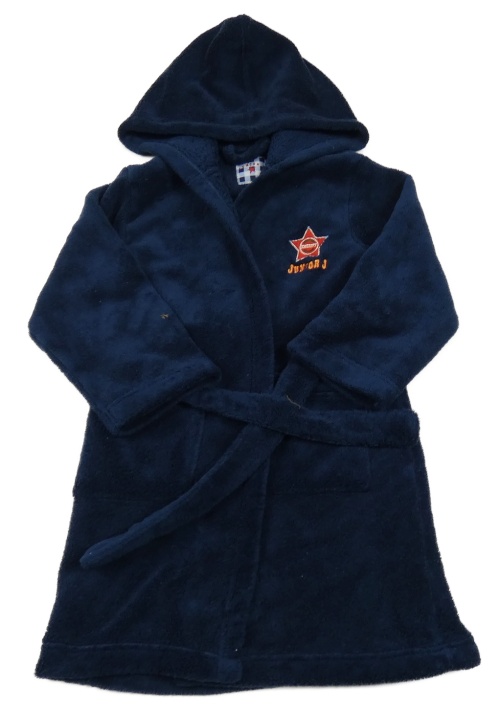 Tmavomodrý chlupatý župan s hvězdou a kapucí