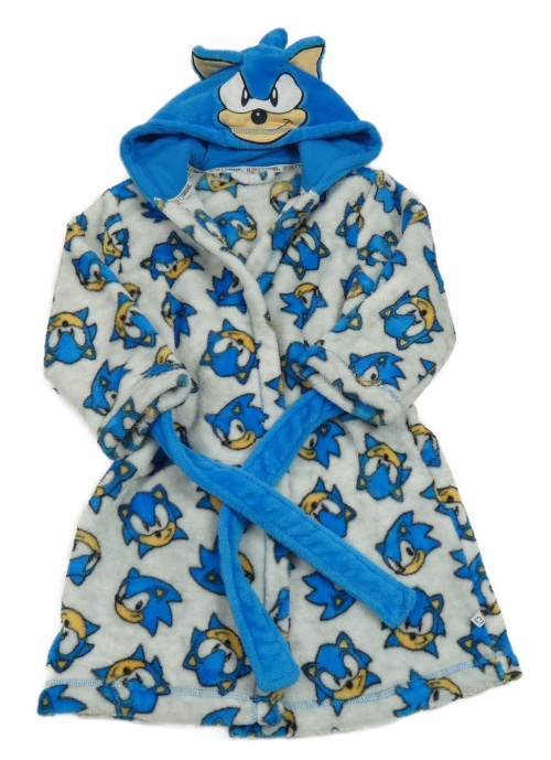 Šedo-modrý chlupatý župan se Sonicem a kapucí
