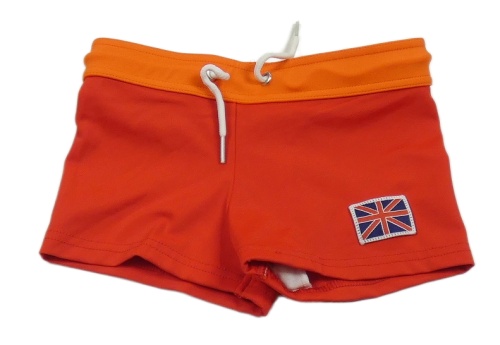 Červeno-oranžové nohavičkové plavky s vlajkou orchestra