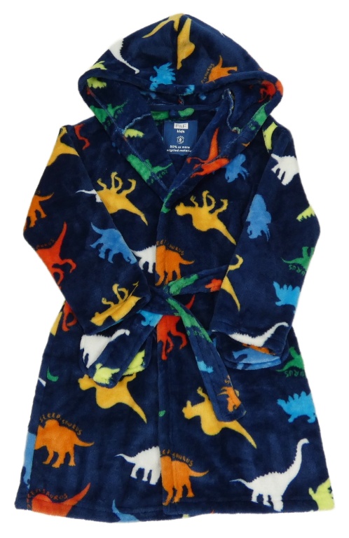 Tmavomodrý plyšový overal s dinosaury a kapucí F&F