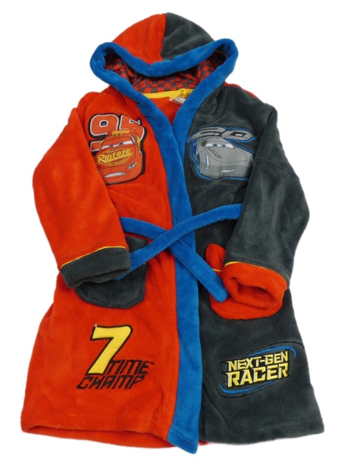 Tmavošedo-červený chlupatý župan s Cars a kapucí Disney
