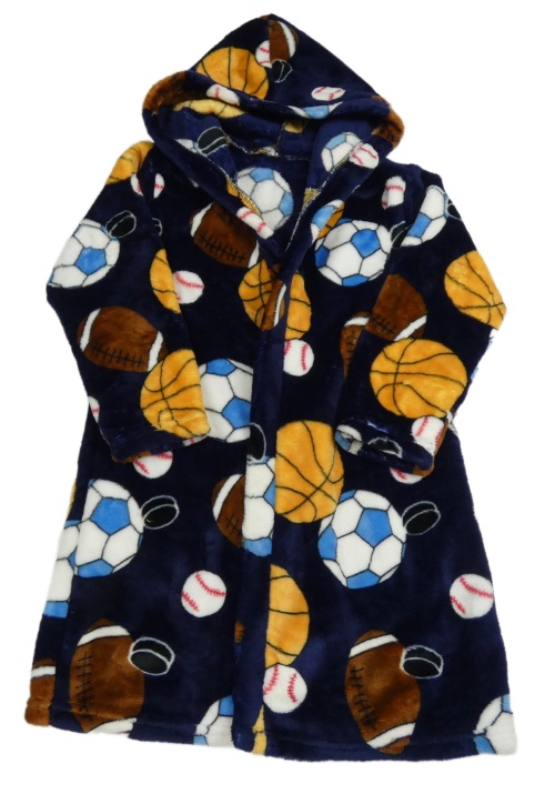 Tmavomodrý plyšový župan s míči a kapucí Shein