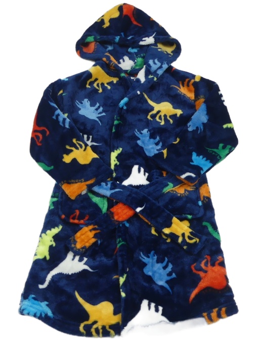 Tmavomodrý chlupatý župan s dinosaury a kapucí F&F