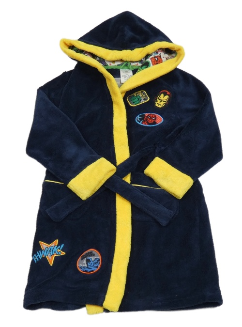 Tmavomodrý chlupatý župan s Avengers a kapucí Marvel