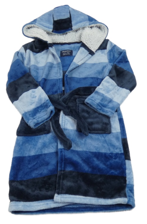 Modro-tmavomodro-světlemodrý pruhovaný plyšový župan s kapucí PRIMARK