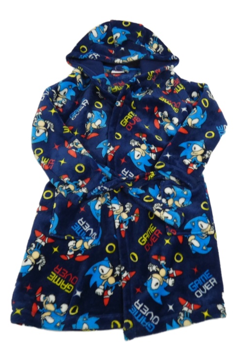 Tmavomodrý chlupatý župan se Sonicem a kapucí Tu