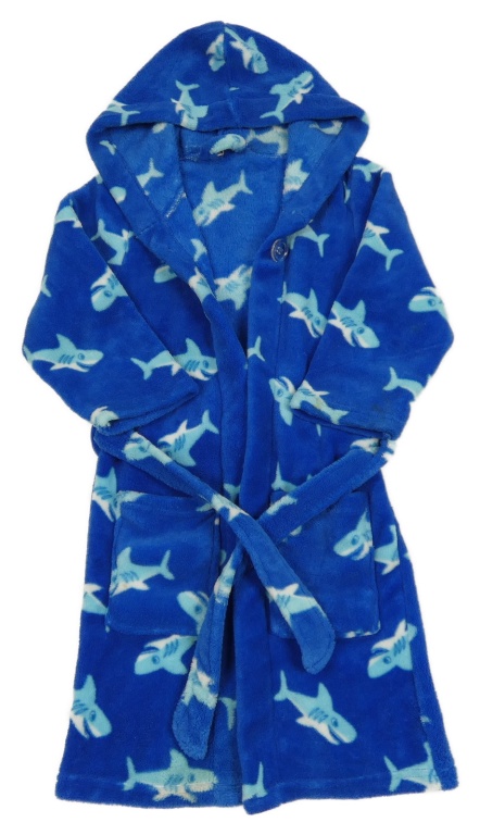 Tmavomodrý plyšový župan se žraloky a kapucí