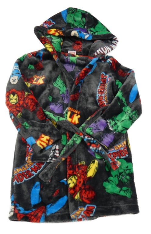 Tmavošedý plyšový župan se superhrdiny a kapucí MARVEL