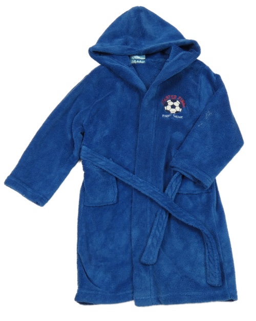 Tmavomodrý plyšový župan s míčem a kapucí