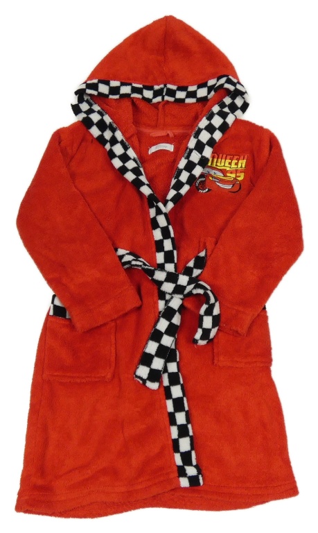 Červený chlupatý župan s Cars a kapucí Disney