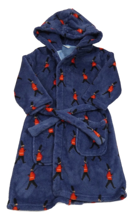 Tmavomodrý chlupatý župan s vojáky a kapucí M&S