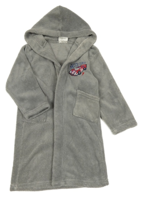 Šedý chlupatý župan s autem a kapucí