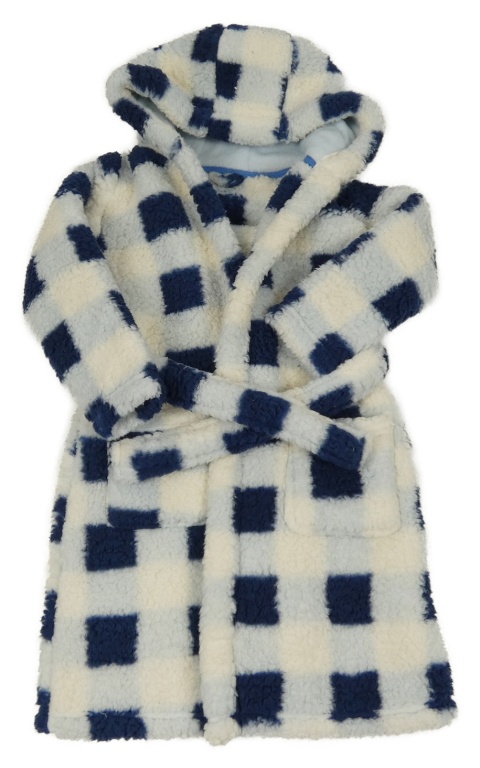 Bílo-tmavomodro-modrý kostkovaný huňatý župan s kapucí Dunnes