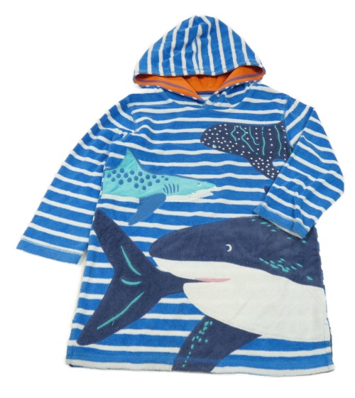 Modro-bílý pruhovaný froté župan s mořskými živočichy a kapucí Mini Boden