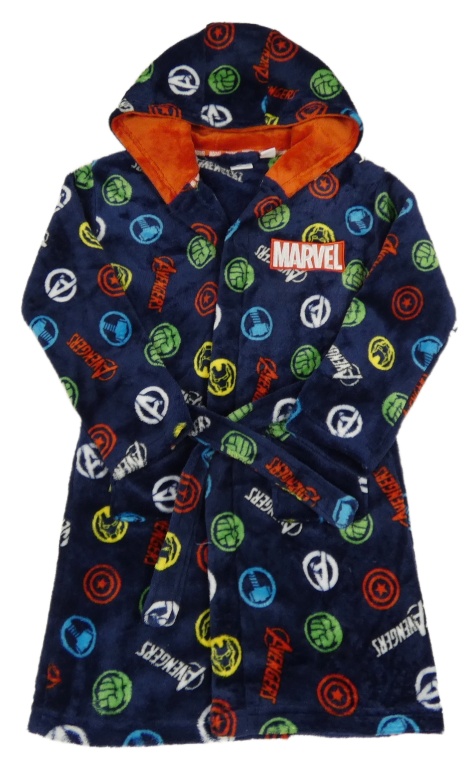 Tmavomodrý plyšový župan se znaky Avengers a logem a kapucí PRIMARK
