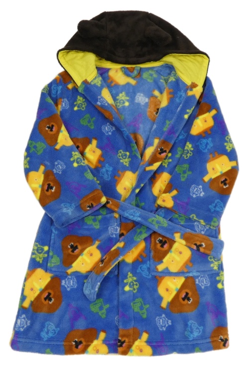 Modro-žlutý plyšový župan s HejHafí a kapucí