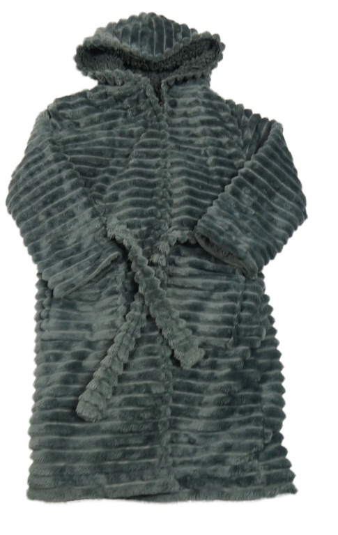 Tmavošedý žebrovaný chlupatý zateplený župan s kapucí John Lewis