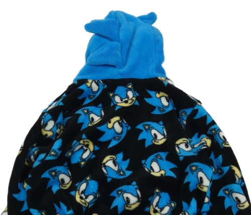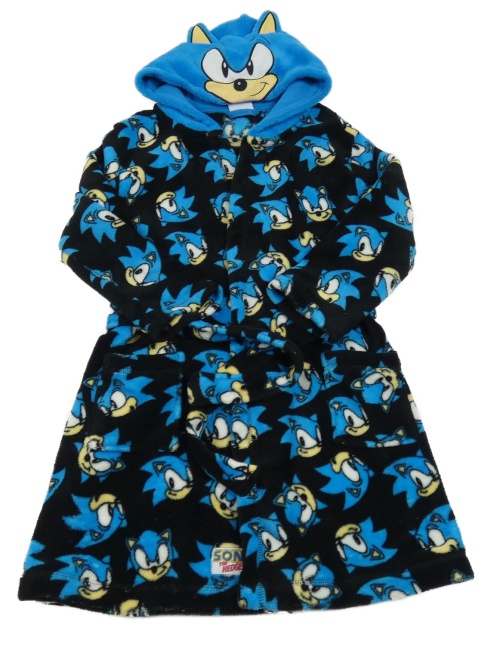 Černo-modrý plyšový župan se Sonicem a kapucí