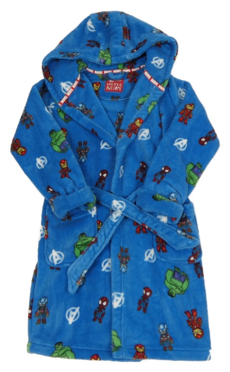 Modrý chlupatý župan s hrdiny a kapucí Tu