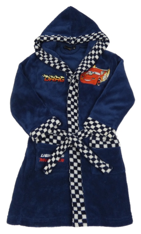 Tmavomodro-kostkovaný chlupatý župan s McQueenem a páskem Disney