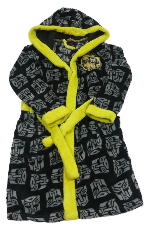 Černo-šedo-žlutý chlupatý vzorovaný župan s kapucí
