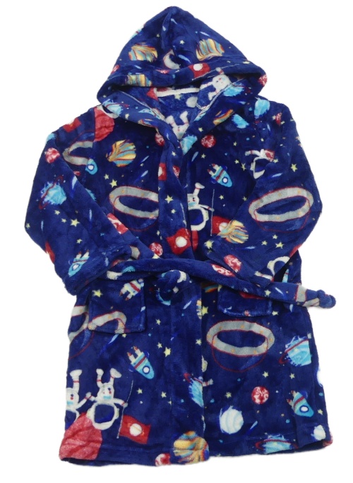 Tmavomodrý plyšový župan s vesmírem a kapucí