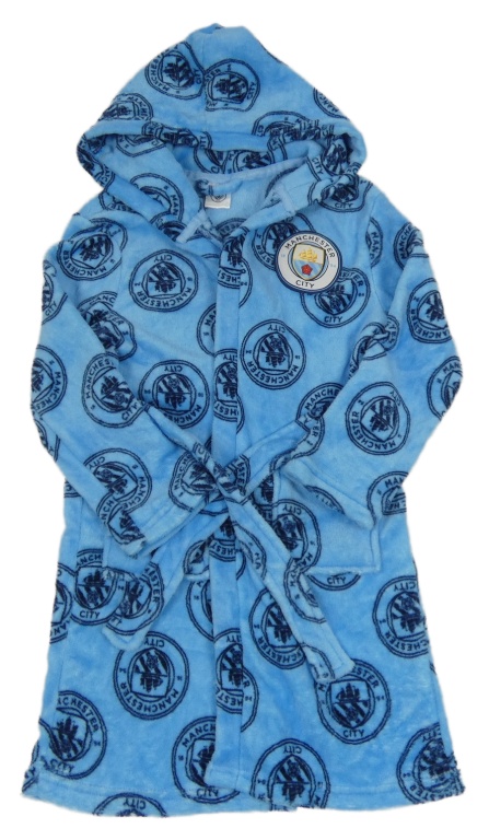 Modrý plyšový fotbalový župan Mancherster City a kapucí