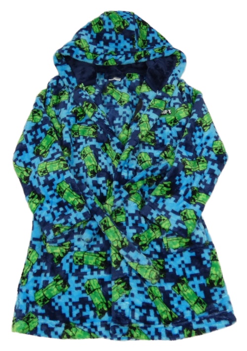Modrý vzorovaný chlupatý župan s Minecraft s kapucí Matalan