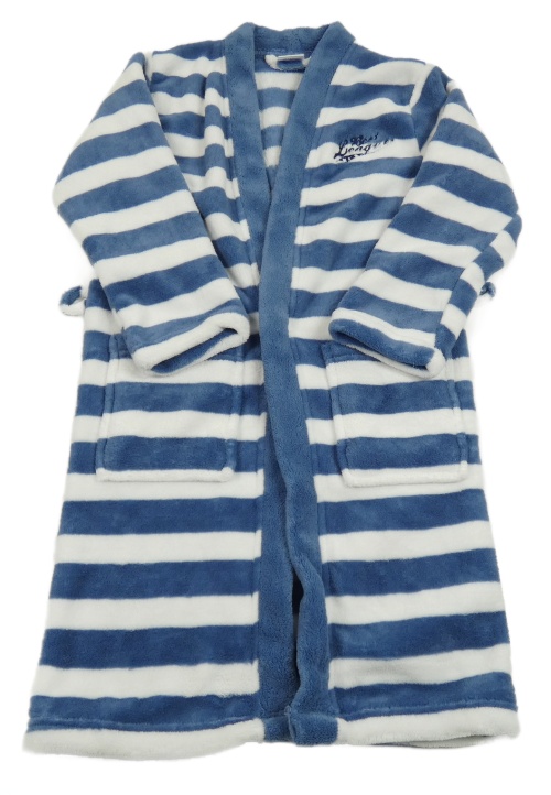 Modro-bílý pruhovaný chlupatý župan s nápisem Alive