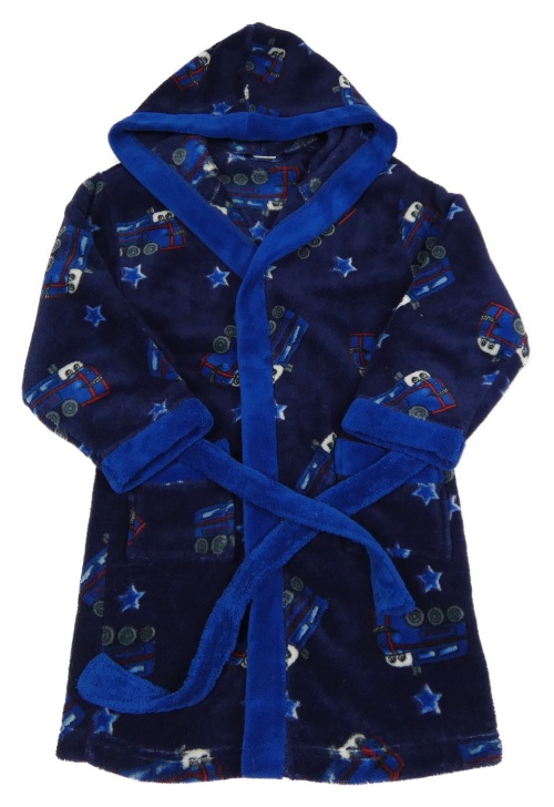 Tmavomodrý chlupatý župan s vlaky a kapucí NKD
