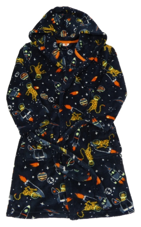 Tmavomodrý chlupatý župan s obrázky a kapucí Hema