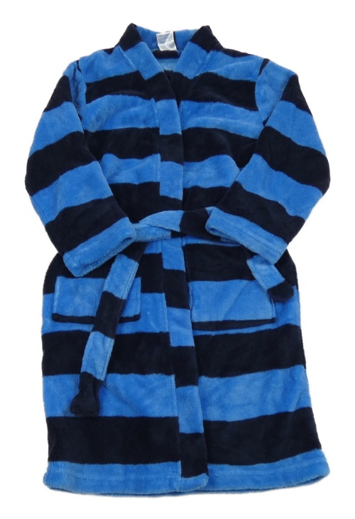 Modro-tmavomodrý pruhovaný plyšový župan Alive