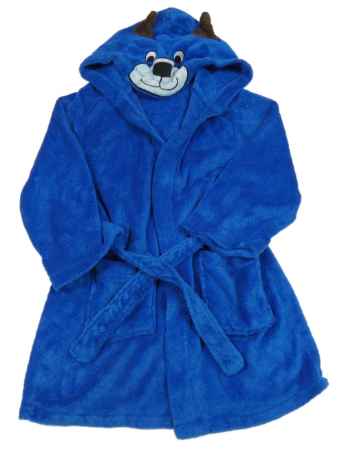 Tmavomodrý plyšový župan s kapucí - pejsek
