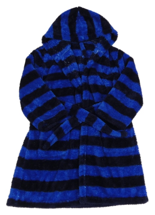 Tmavomodrý pruhovaný plyšový župan s kapucí George