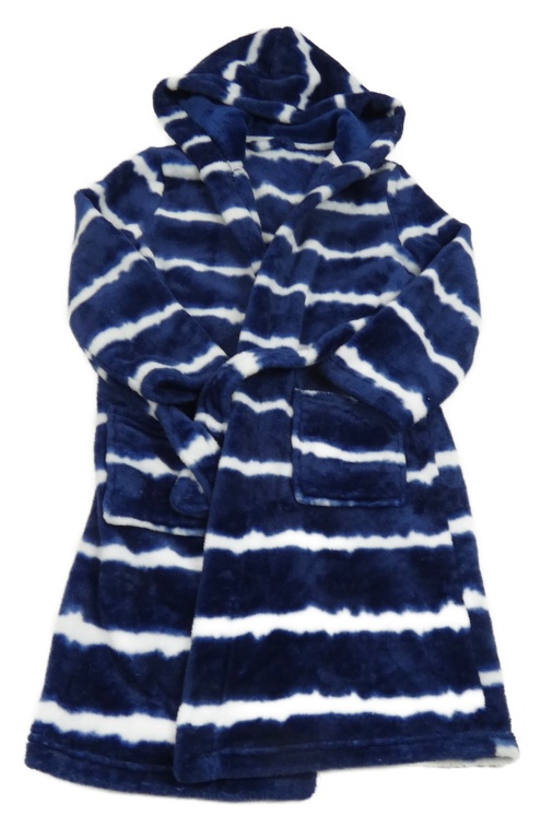 Tmavomodro-bílý pruhovaný plyšový župan s kapucí dunnes