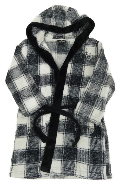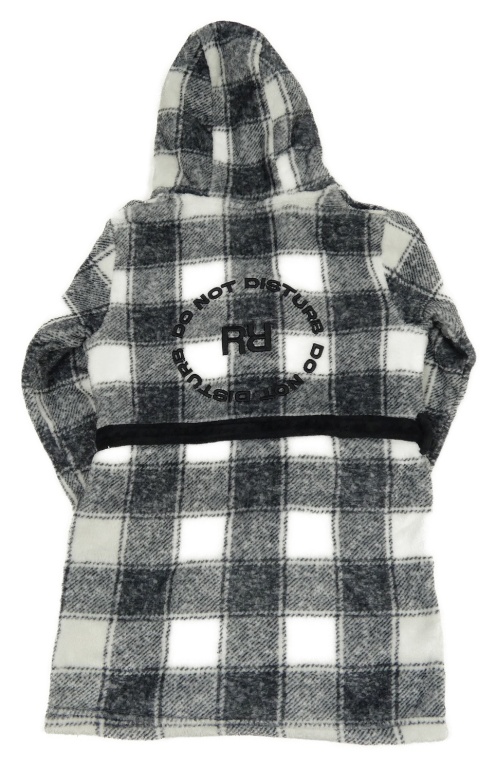 Černo-bílý kostkovaný chlupatý župan s kapucí